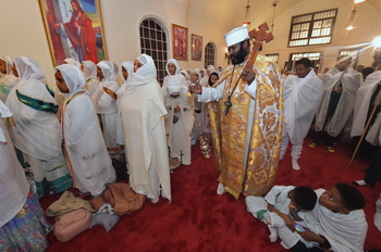 Easter Ceremony of Ethiopian Christians in Tewahedo Church Ethiopian Christians affiliated with the Tewahedo Church celebrate this every year on November 30 under the name "Feast of St. Mary of Zion and the Ark of the Covenant" in every church dedicated to the Virgin Mary.