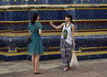 Wat Pho is a Buddhist temple complex in the Phra Nakhon District, Bangkok, Thailand. It is on Rattanakosin Island, directly south of the Grand Palace. Known also as the Temple of the Reclining Buddha. The temple is first on the list of six temples in Thailand classed as the highest grade of the first-class royal temples. It is associated with King Rama I who rebuilt the temple complex on an earlier temple site. It became his main temple and is where some of his ashes are enshrined. The temple was later expanded and extensively renovated by Rama III. The temple complex houses the largest collection of Buddha images in Thailand, including a 46 m long reclining Buddha. The temple is considered the earliest center for public education in Thailand, and the marble illustrations and inscriptions placed in the temple for public instructions have been recognized by UNESCO in its Memory of the World Programme. It houses a school of Thai medicine and is also known as the birthplace of traditional Thai massage which is still taught and practiced at the temple. Wat Pho is one of the largest and oldest wats in Bangkok covering an area of 80,000 square meters. It is home to more than one thousand Buddha images, as well as one of the largest single Buddha images at 46 meters in length. The Wat Pho complex consists of two walled compounds bisected by Chetuphon Road running in the east-west direction. The larger northern walled compound, the phutthawat, is open to visitors and contains the finest buildings dedicated to the Buddha, including the bot with its four directional viharn, and the temple housing the reclining Buddha. The southern compound, the sankhawat, contains the residential quarters of the monks and a school. The perimeter wall of the main temple complex has sixteen gates, two of which serve as entrances for the public. The temple grounds contain four great chedis, 91 small chedis, two belfries, a bot (central shrine), a number of viharas (halls), and various buildings such as pavilions, as well as gardens and a small temple museum. Architecturally the chedis and buildings in the complex are different in style and sizes. A number of large Chinese statues, some of which depict Europeans, are also found in the complex guarding the gates of the perimeter walls as well as other gates in the compound. These stone statues were originally imported as ballast on ships trading with China. Wat Pho was also intended to serve as a place of education for the general public. To this end, a pictorial encyclopedia was engraved on granite slabs covering eight subject areas: history, medicine, health, custom, literature, proverbs, lexicography, and the Buddhist religion. These plaques, inscribed with texts and illustrations on medicine, Thai traditional massage, and other subjects, are placed around the temple, for example, within the Sala Rai or satellite open pavilions. Dotted around the complex are 24 small rock gardens illustrating rock formations of Thailand, and one, called the Contorting Hermit Hill, contains some statues showing methods of massage and yoga positions. There are also drawings of constellations on the wall of the library, inscriptions on local administration, as well as paintings of folk tales and animal husbandry. (Source: en.wikipedia.org)
